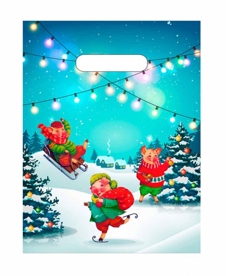 С приближением Нового года неизменно хочется погрузиться в его сказочную атмосферу, окружить себя атрибутами любимого с детства праздника. Каждая мелочь имеет значение, вот почему так важно не забыть позаботиться и о приобретении новогодних пакетов, которые поддержат хорошее настроение своим эффектным видом и позволят отлично упаковать любой подарок. Предлагаем Вашему вниманию праздничные пакеты с рисунком «Три поросенка», оформленные ярко и со вкусом, небольшого удобного размера 20х30 см, позволяющего поместить в такой пакет коробку конфет, книгу и другие некрупные предметы. Рисунок надолго сохранит свои краски, так что этот красивый и практичный пакет может быть использован не один раз.