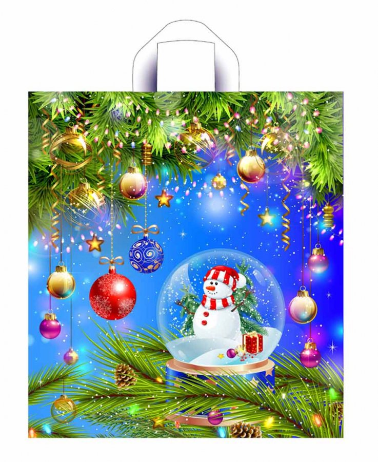 Пакет ПТЛ 38см*42см(+0)*37мкм, ПНД, "Снеговик в шаре"