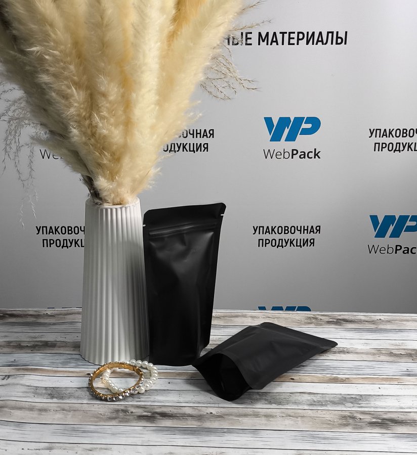 Пакет Дой-Пак 10,5*19,5(+3,5)см, Металл/PET/БОПП (черный матовый)