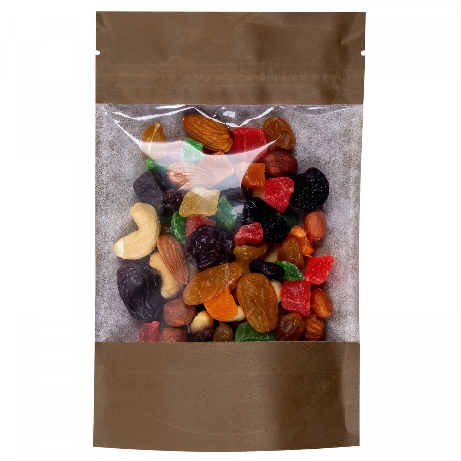 - Крафт пакеты дой-пак (цвет светло-коричневый) с окном 100 мм, размер 120x185 мм, применяются для упаковки и хранения сыпучей продукции (кофе, чай, крупы, специи, орехи, сухофрукты, сладости, снэки и др.).