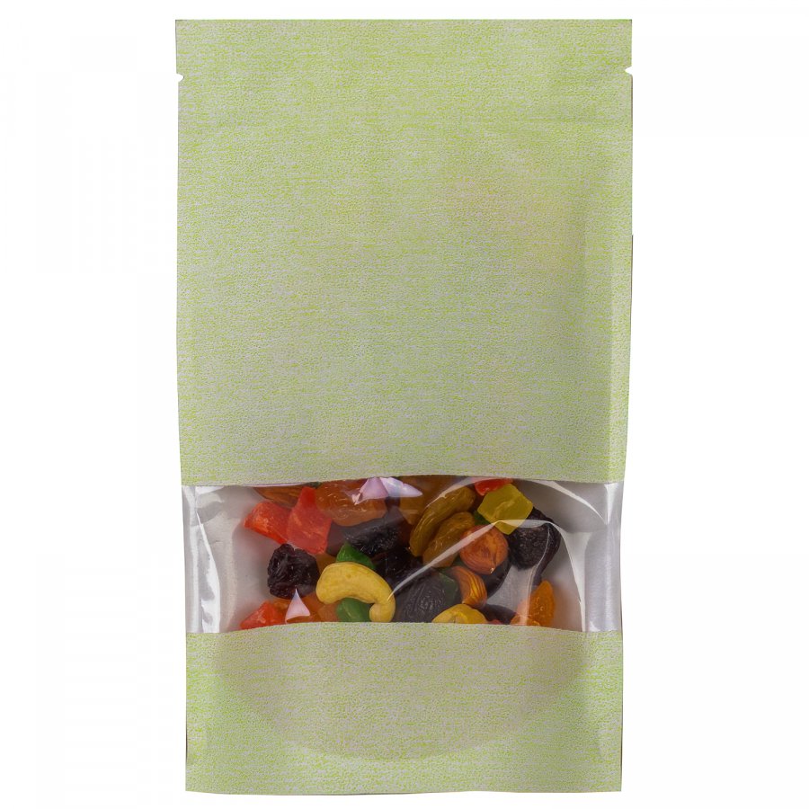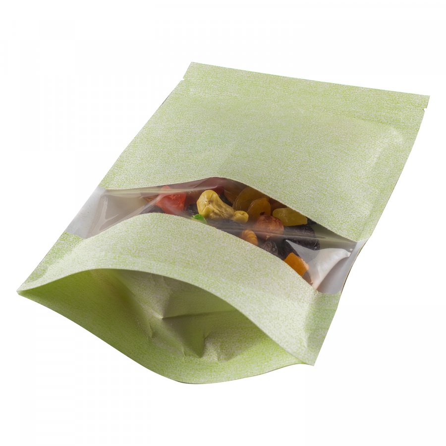 - Крафт пакеты дой-пак (цвет салатовая волна) с окном, размер 135x225 мм, применяются для упаковки и хранения сыпучей продукции (кофе, чай, крупы, специи, орехи, сухофрукты, сладости, снэки и др.).