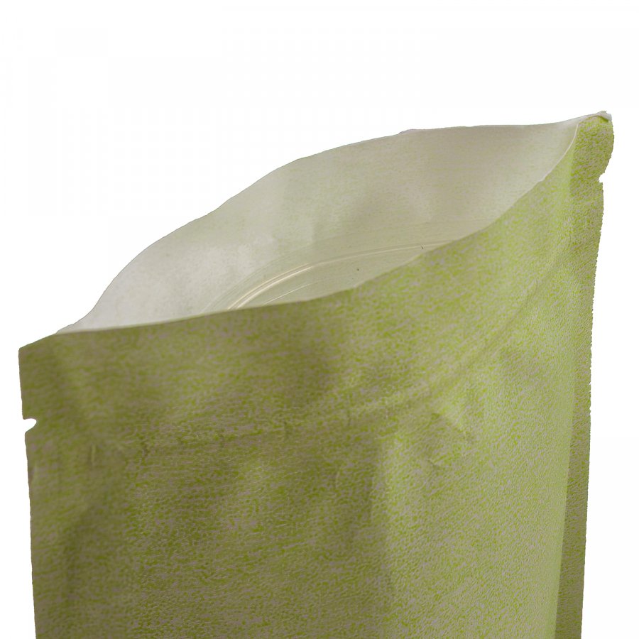 Пакет Дой-Пак 13,5*22,5(+3,5)см, Крафт (салатовая волна), с окном 4см