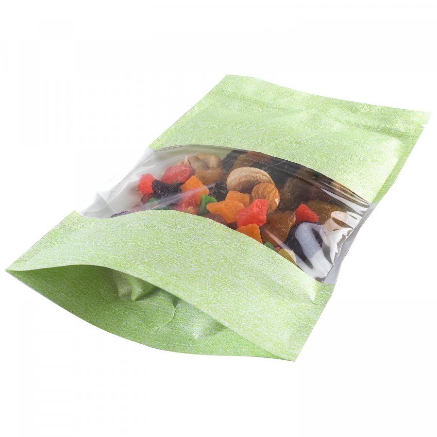 Пакет Дой-Пак 13,5*22,5(+3,5)см, Крафт (салатовая волна), с окном 7см