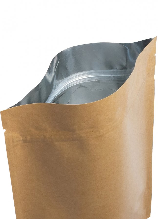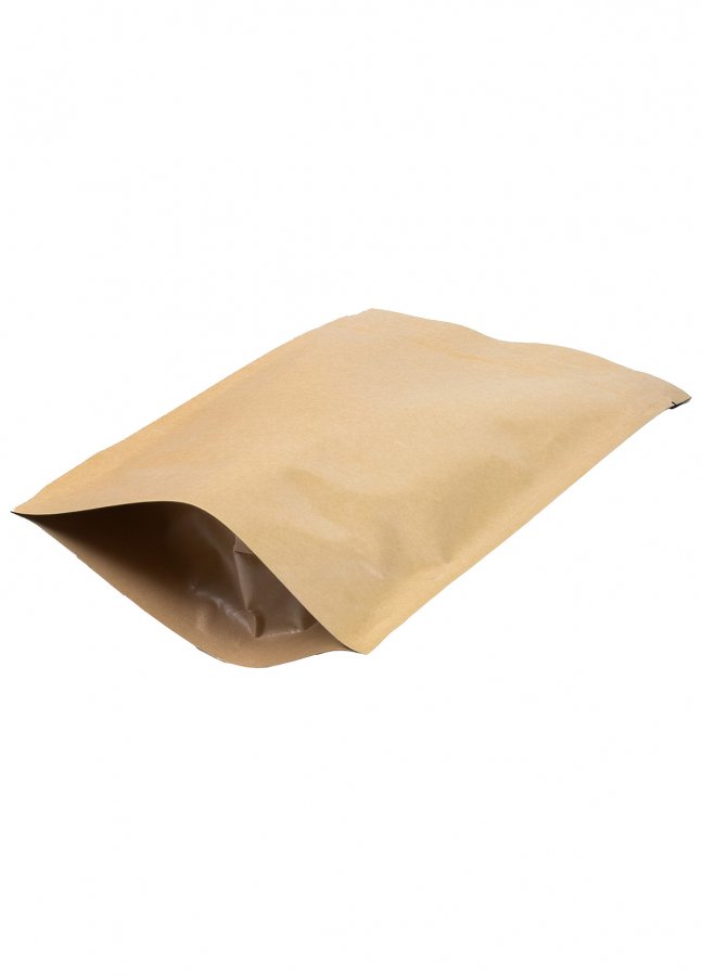- Крафтовые пакеты дой-пак, размер 150x210 мм, с ламинированным верхним слоем из матовой пленки.