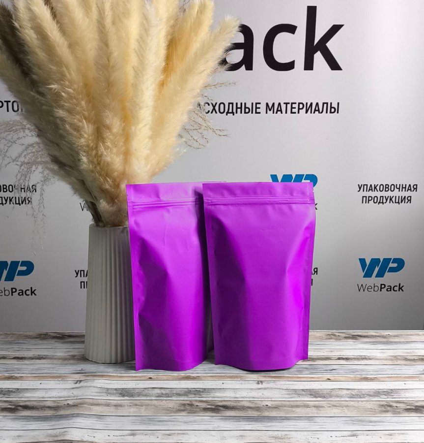 • Пакеты дой-пак сиреневые матовые, размер 160*250(+45)мм, применяются для упаковки и хранения сыпучей продукции (кофе, чай, крупа, специи, орехи, сухофрукты, сладости, снэки, морская соль, скраб для тела, бытовая химия, корм для животных и др.).