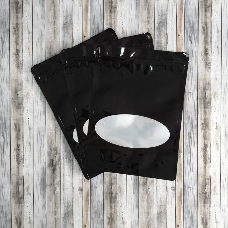 Пакет Дой-Пак 22*30(+5,5)см, Металл/PET/БОПП (черный) с овальным окном, 50 шт.