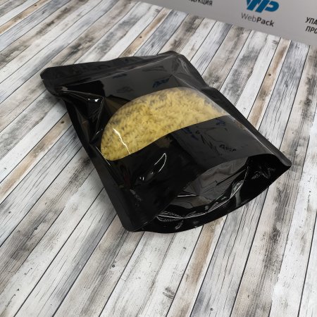 • Пакеты дой-пак черного цвета 220*300(+55)мм с овальным окошком применяются для упаковки и хранения сыпучей продукции (кофе, чай, крупа, специи, орехи, сухофрукты, сладости, снэки).