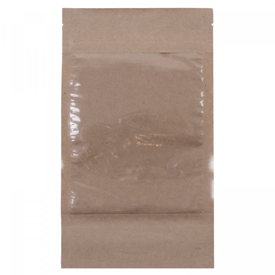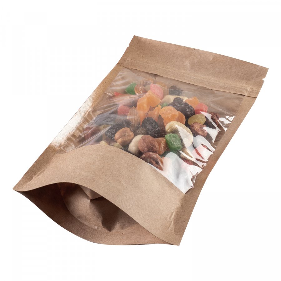 Пакет Дой-Пак бумажный 130*225(+35)мм, (бурый крафт), с окном 135мм