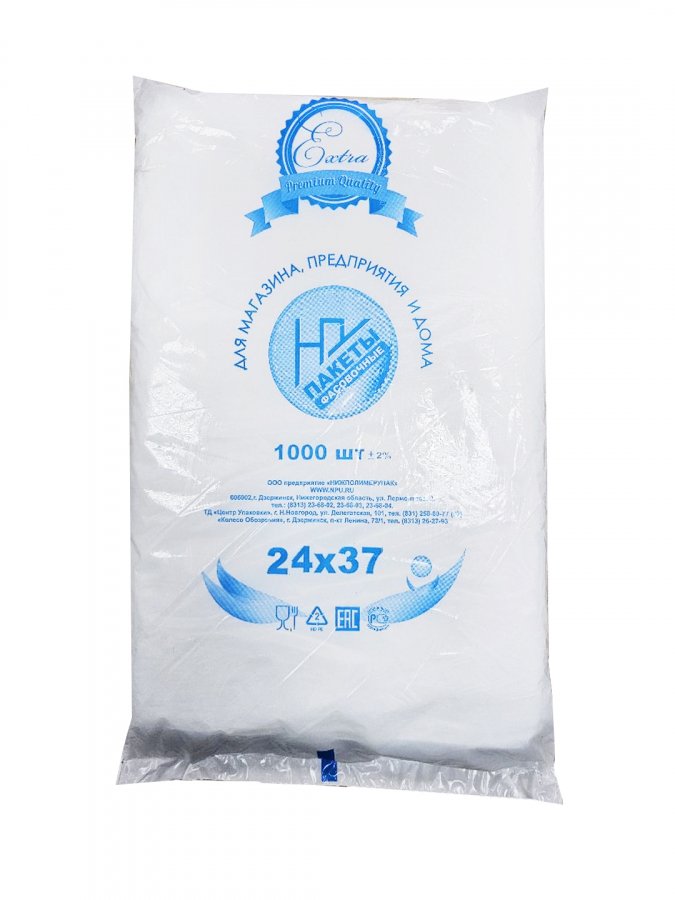 - Прозрачные фасовочные пакеты 24x37 см из полиэтилена низкого давления (ПНД), толщина 8 мкм.