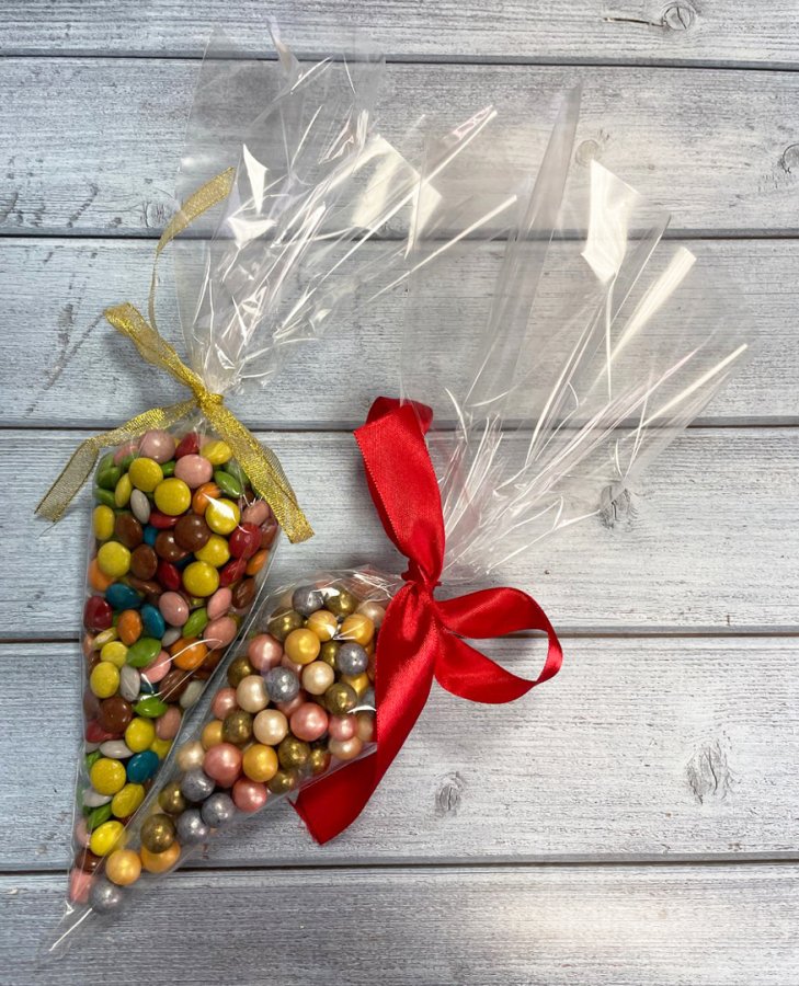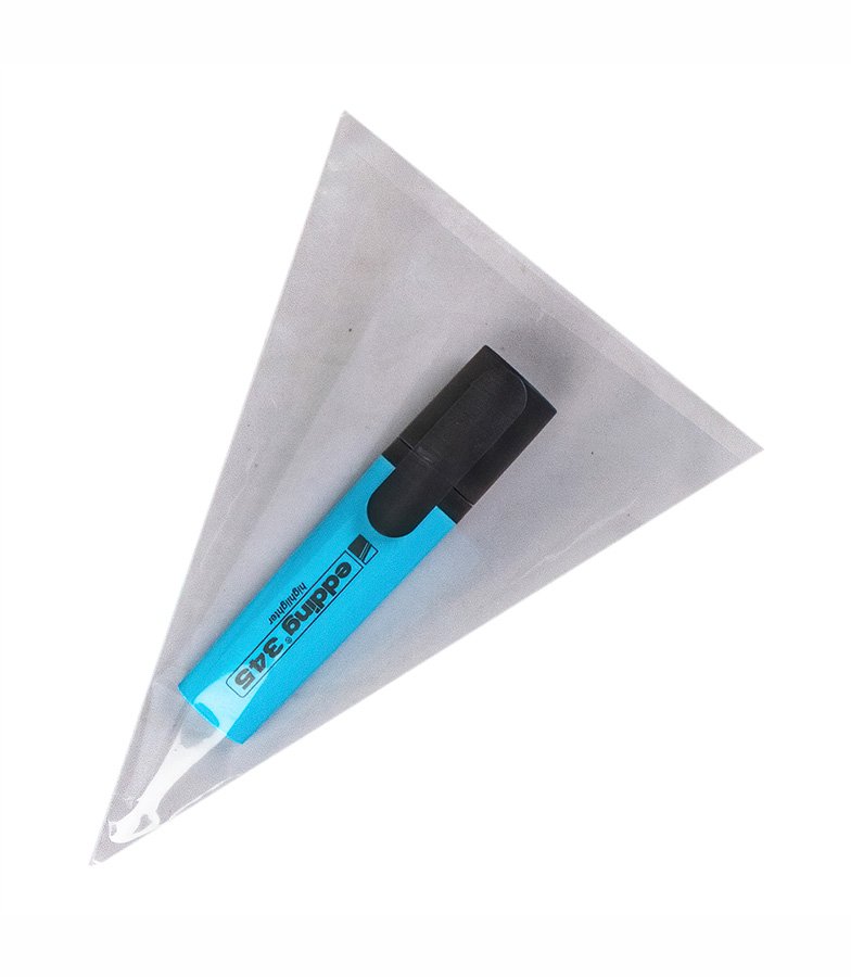 • Прозрачный пакет-конус в виде треугольника. Размер 15x20 см, толщина 30 мкм.