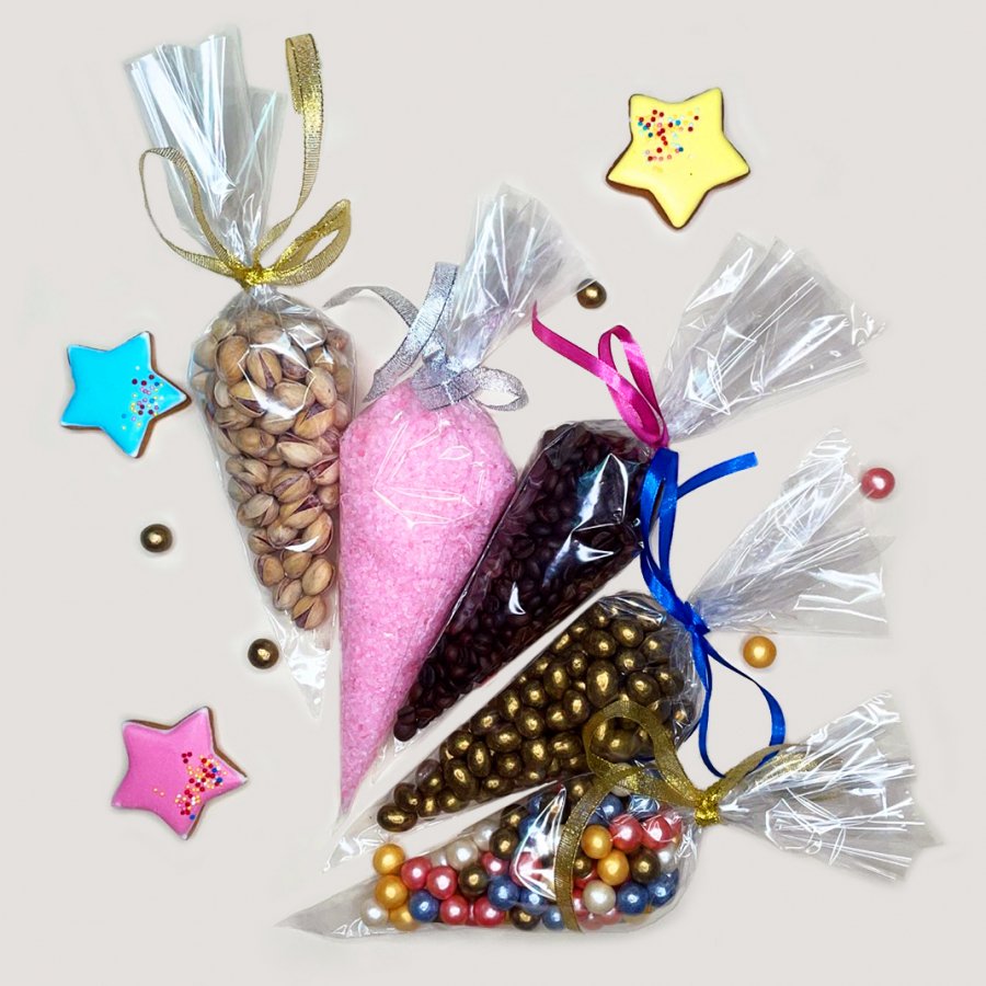 • Идеальный вариант для упаковки сладостей, конфет, орехов, сухофруктов, драже, маршмеллоу, мармелада и других сыпучих продуктов.