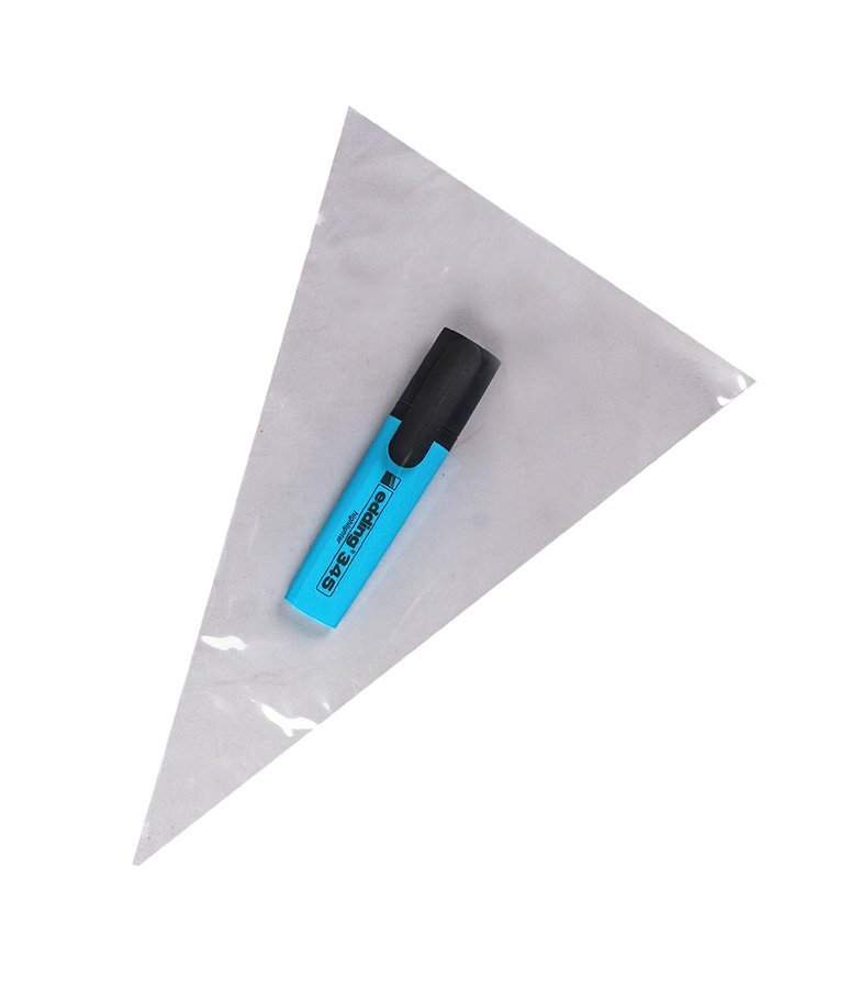 - Прозрачный пакет-конус в виде треугольника. Размер 20x30 см, толщина 30 мкм.