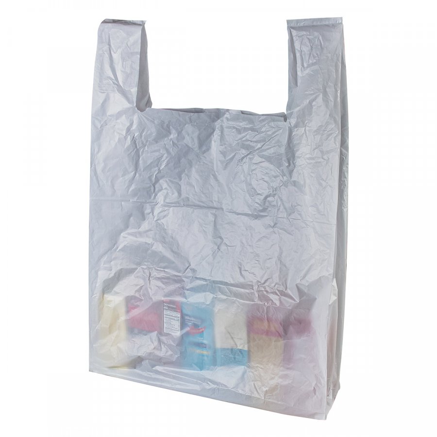 Пакеты-майка белого цвета, размер 50x80 см, толщина 30 мкм. Есть боковые фальцы. Используются в магазинах и супермакетах для упаковки различных товаров (одежды, обуви, техники, канцелярии и др.).