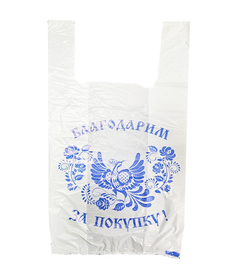 - Пакеты-майка с надписью "Благодарим за покупку" и рисунком "Птица", размер 27x48 см, толщина 10 мкм. Используются в магазинах и супермакетах для упаковки различных товаров.