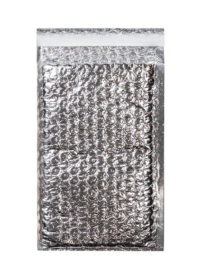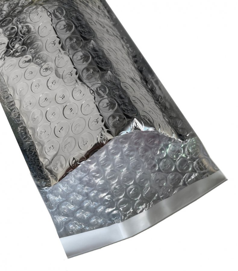 - Фольгированные трехслойные воздушно-пузырчатые пакеты 12x21 см с клеевым клапаном 45 мм. Две внешние стороны - металлизированные, серебристого цвета; внутри - воздушно-пузырчатая пленка.