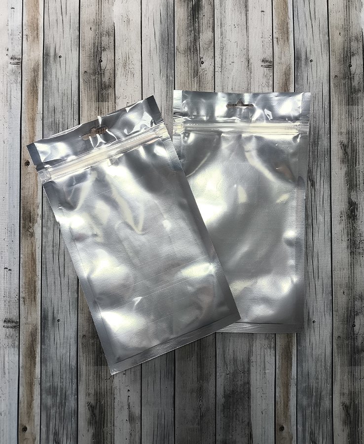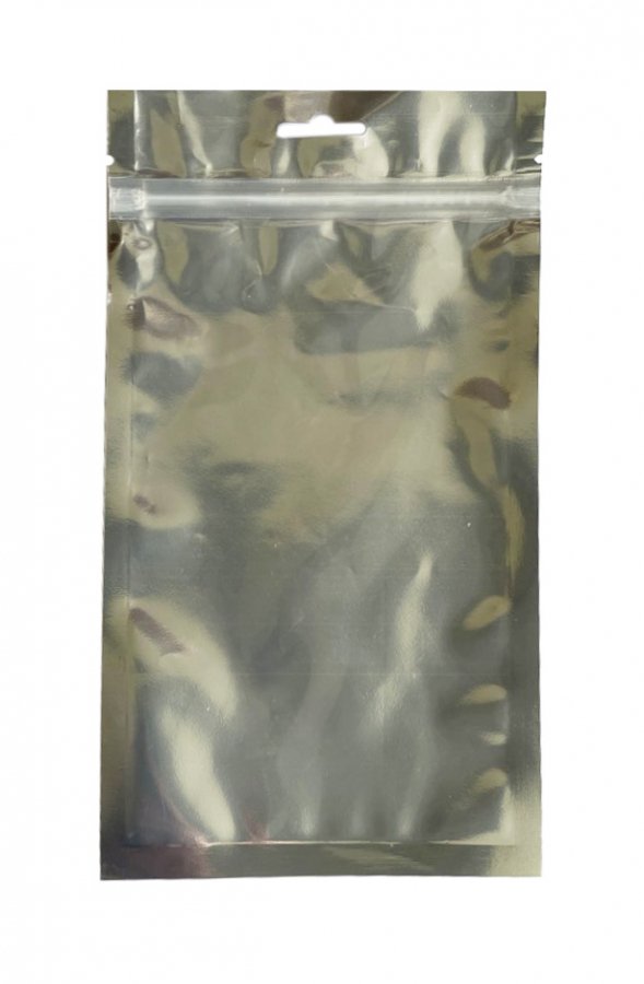 - Пакеты трехшовные ПЭТ/ПЭ (размер 120x210 мм, толщина 95 мкм) с европодвесом и замком зип-лок. Одна сторона выполнена из прозрачной пленки, вторая - металлизированная.