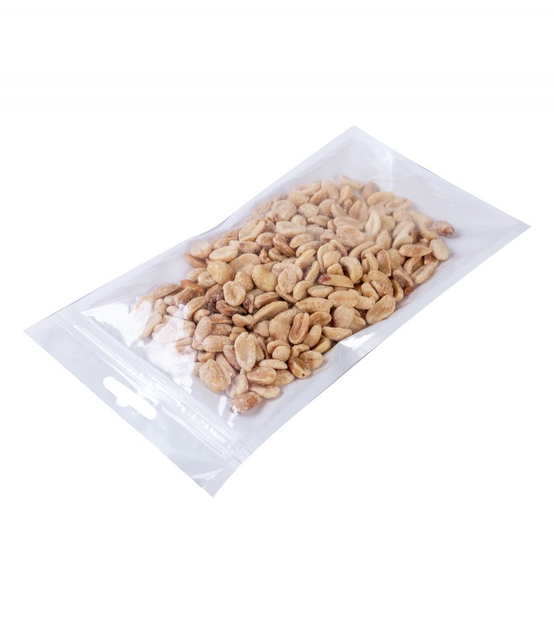 - Пакеты трехшовные ПЭТ/ПЭ (размер 120x210 мм, толщина 62 мкм) с европодвесом и замком зип-лок. Одна сторона выполнена из прозрачной пленки, вторая из белой.