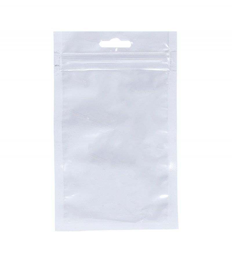 Пакет трехшовные 8*13см, 62 мкм, ПЭТ/ПЭ (бел+прозр), зип-лок, европодвес