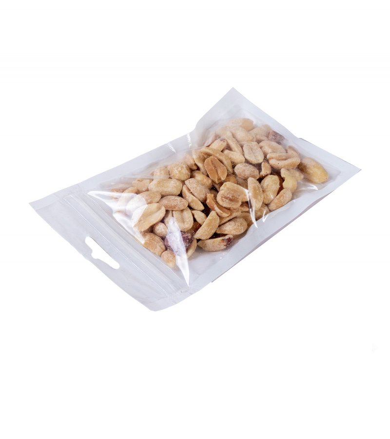 - Пакеты трехшовные ПЭТ/ПЭ (размер 80x130 мм, толщина 62 мкм) с европодвесом и замком зип-лок. Одна сторона выполнена из прозрачной пленки, вторая из белой.