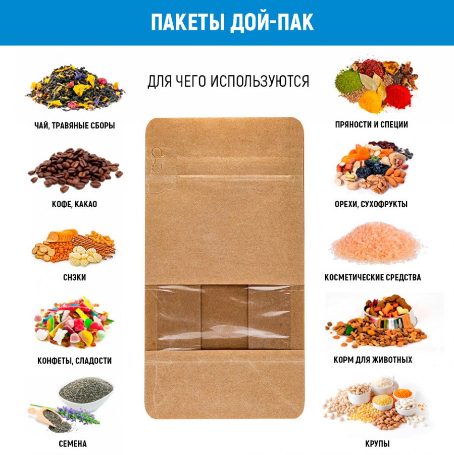 - Используются для фасовки орехов, сухофруктов, кондитерских изделий; кормов для животных; вяленых, соленых и сушено-копченых снеков; чая, какао и трав и т.д.