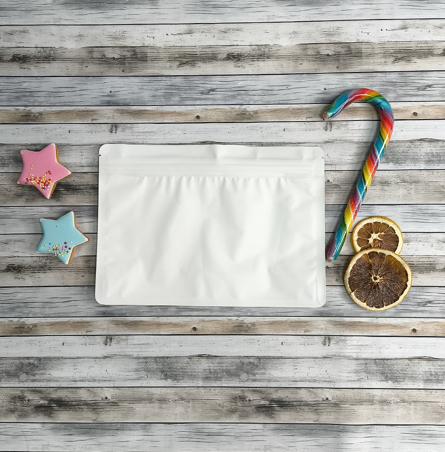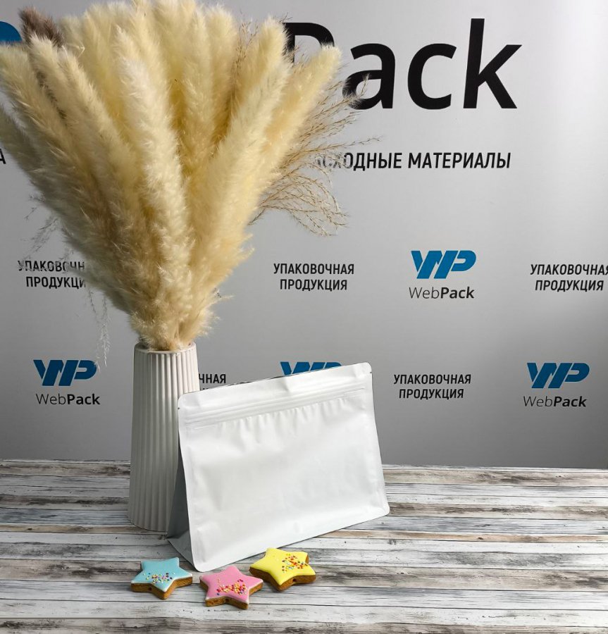 - Белые матовые пакеты с плоским дном и замком зип-лок, размер 240x80x170 мм.