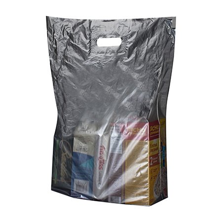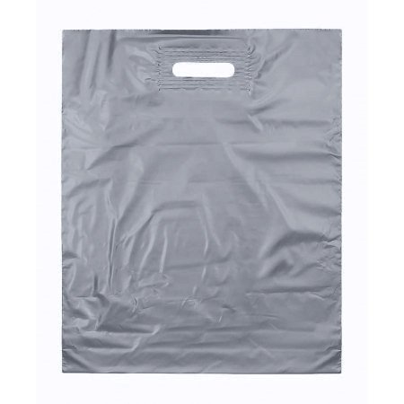 - Серебряно-прозрачные пакеты ПВД с вырубной ручкой, размер 40x50 см (толщина 50 микрон) с донной складкой.