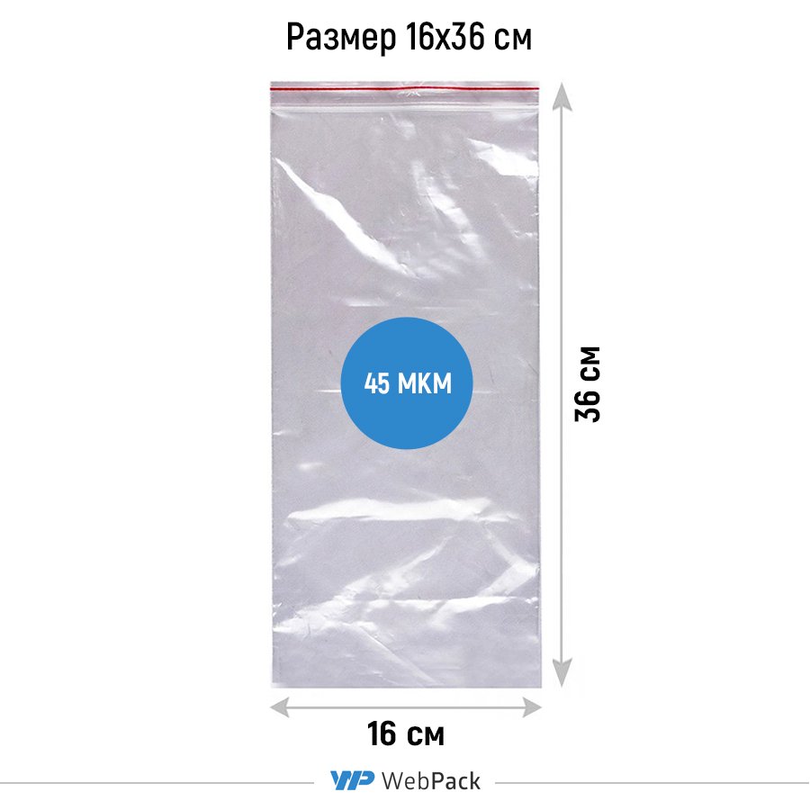 - Прозрачные пакеты с замком Зип-Лок 16x36 см, толщина 45 мкм, предназначены для фасовки, хранения и продажи штучной и сыпучей продукции.