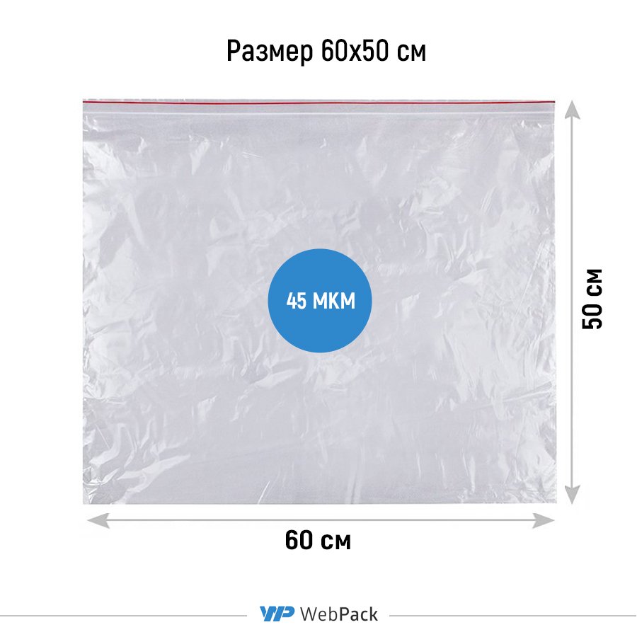 • Прозрачные пакеты с замком Зип-Лок 60x50 см, толщина 45 мкм, предназначены для фасовки, хранения и продажи штучной и сыпучей продукции.