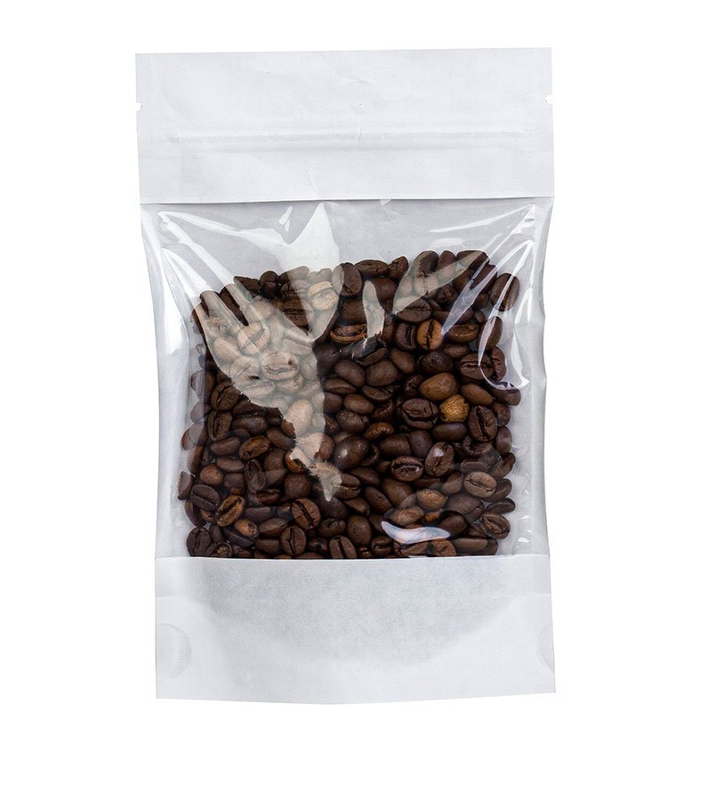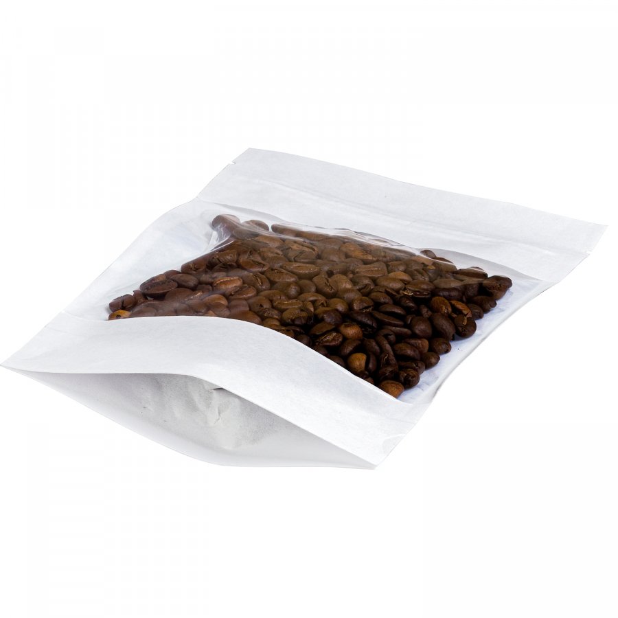 - Крафт пакеты дой-пак белого цвета с окном, размер 105x185 мм, применяются для упаковки и хранения сыпучей продукции (кофе, чай, крупы, специи, орехи, сухофрукты, сладости, снэки и др.).