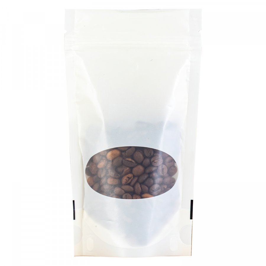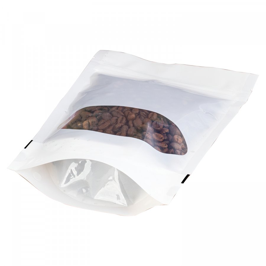 - Пакеты дой-пак белого цвета 105*190(+35)мм с овальным окошком применяются для упаковки и хранения сыпучей продукции (кофе, чай, крупа, специи, орехи, сухофрукты, сладости, снэки).