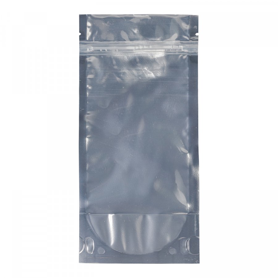 Пакет Дой-Пак 10,5*21,5(+3,5)см, Мет/PET/БОПП (сереб), с прозр. стенкой, зип-лок, насечка