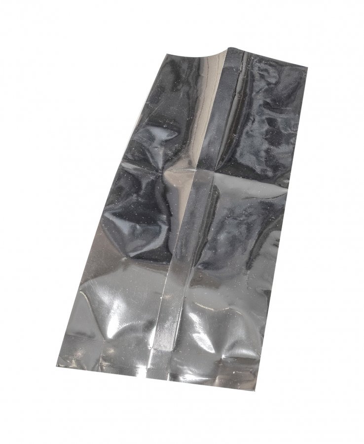 - Пакеты с центральным швом 75(+50)*200 мм серебристого цвета используются для фасовки кофе, какао и чая, специй, приправ, снеков.