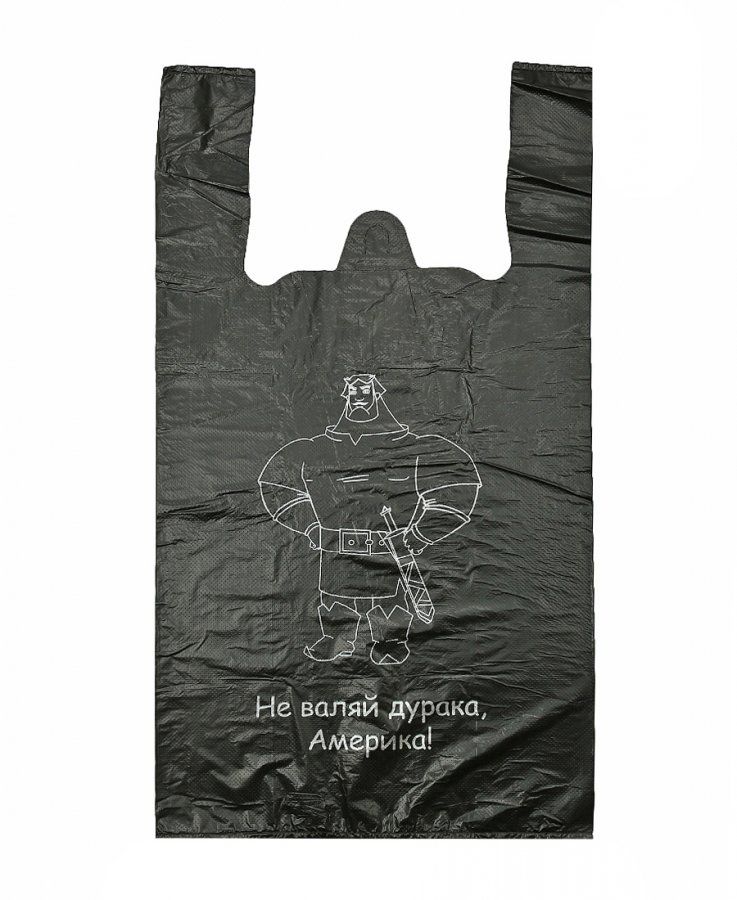 Пакеты-майка черные "Богатырь", размер 30x55 см, толщина 17 мкм. Есть боковые фальцы. Используются в магазинах и супермакетах для упаковки различных товаров (одежды, обуви, техники, канцелярии и др.).