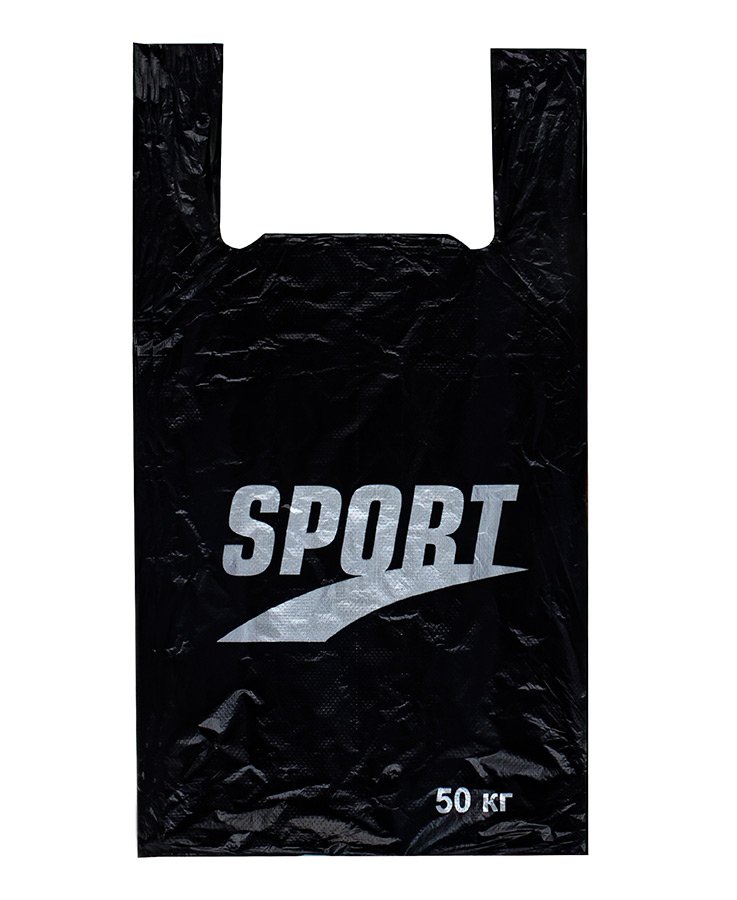 Пакеты-майка с надписью "Sport", размер 29x53 см, толщина 20 мкм. Есть боковые фальцы. Используются в магазинах и супермакетах для упаковки различных товаров (одежды, обуви, техники, канцелярии и др.).