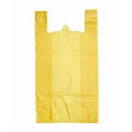 Пакеты-майка желтого цвета, размер 38x65 см, толщина 15 мкм. Есть боковые фальцы. Используются в магазинах и супермакетах для упаковки различных товаров (одежды, обуви, техники, канцелярии и др.).