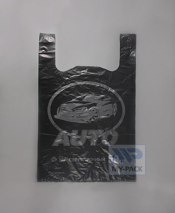 Пакет-майка с рисунком "АВТО" для упаковки промтоваров и продуктов питания и повышения покупательской лояльности. Изготавливается из ПНД, шуршит при смятии, подходит для торговых точек и неоднократного использования в быту.
