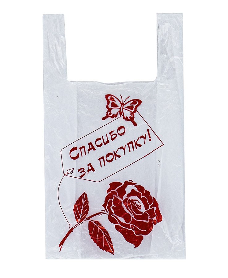 Пакеты-майка с надписью "Спасибо за покупку", размер 27x48 см, толщина 12 мкм. Есть боковые фальцы. Используются в магазинах и супермакетах для упаковки различных товаров (одежды, обуви, техники, канцелярии и др.).