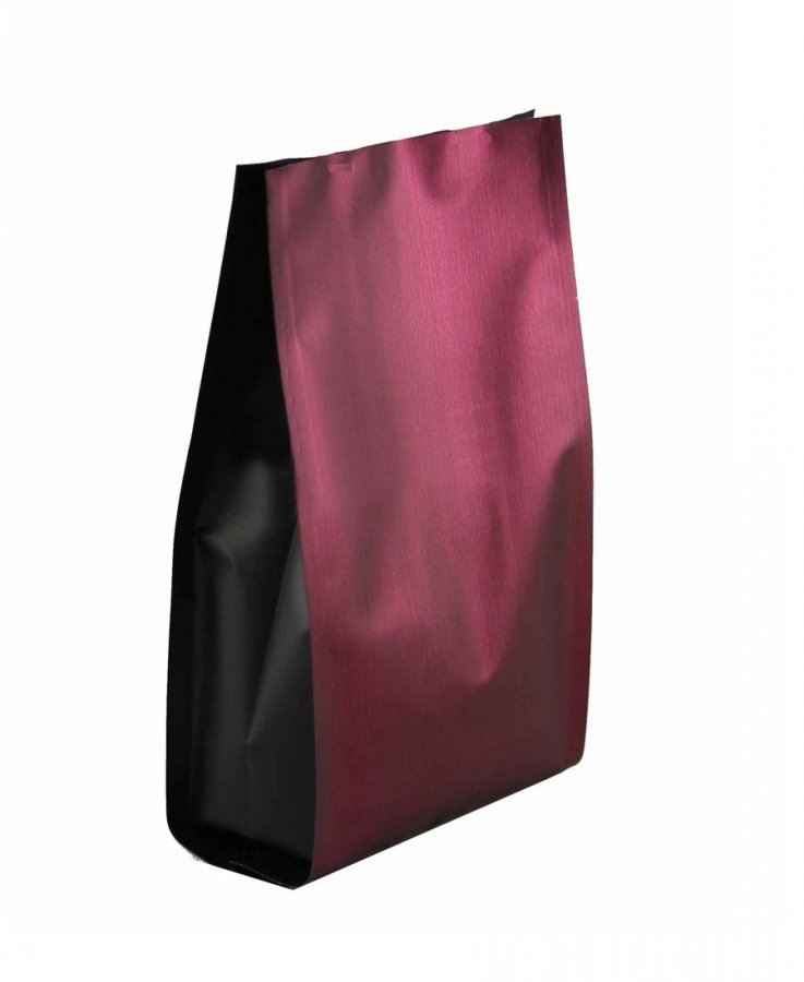 - Пакеты пятишовные 115(+70)*250 мм бордового цвета с черными фальцами используются для фасовки кофе, какао и чая, специй, приправ, снеков.