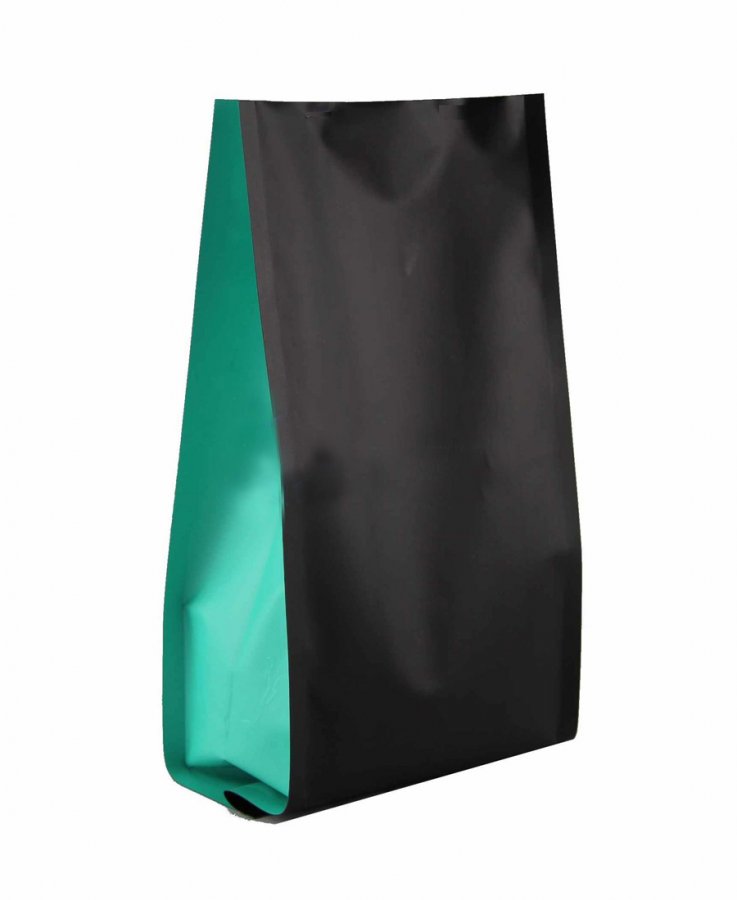 - Пакеты пятишовные 115(+70)*250 мм черного цвета с бирюзовыми фальцами используются для фасовки кофе, какао и чая, специй, приправ, снеков.