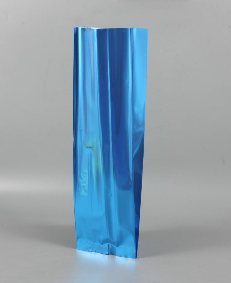 - Пакеты с центральным швом 120(+70)*400 мм синего цвета используются для фасовки кофе, какао и чая, специй, приправ, снеков.