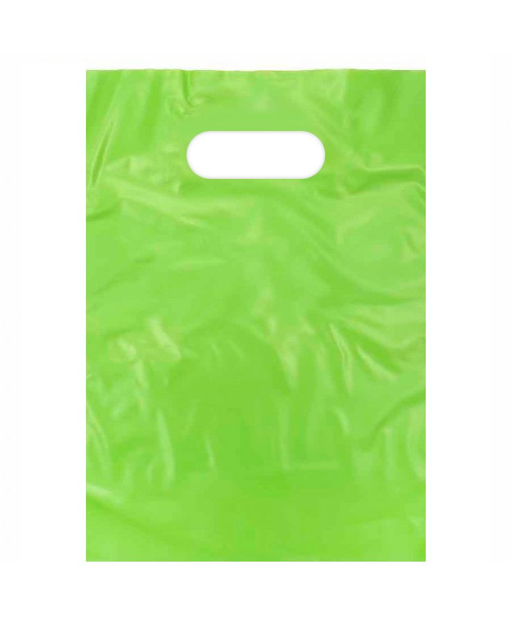 - Салатовые пакеты ПВД с вырубной ручкой, размер 20x30 см (толщина 45 микрон) без донной складки.