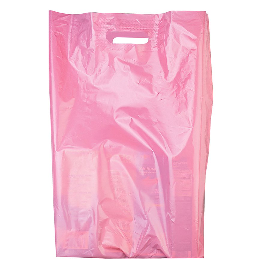 - Розовые пакеты ПВД с вырубной ручкой, размер 40x50 см (толщина 60 микрон) с донной складкой.