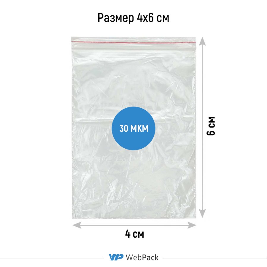 - Прозрачные пакеты с замком Зип-Лок 4x6 см, толщина 30 мкм, предназначены для фасовки, хранения и продажи штучной и сыпучей продукции.