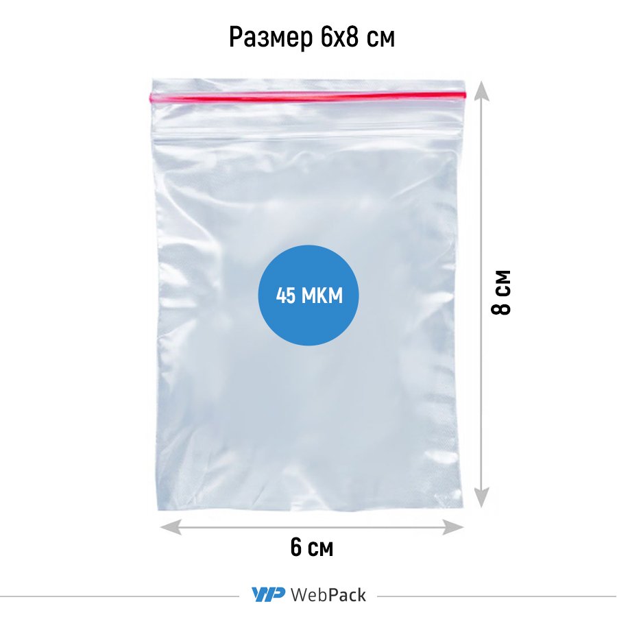 - Прозрачные пакеты с замком Зип-Лок 6x8 см, толщина 45 мкм, предназначены для фасовки, хранения и продажи штучной и сыпучей продукции.