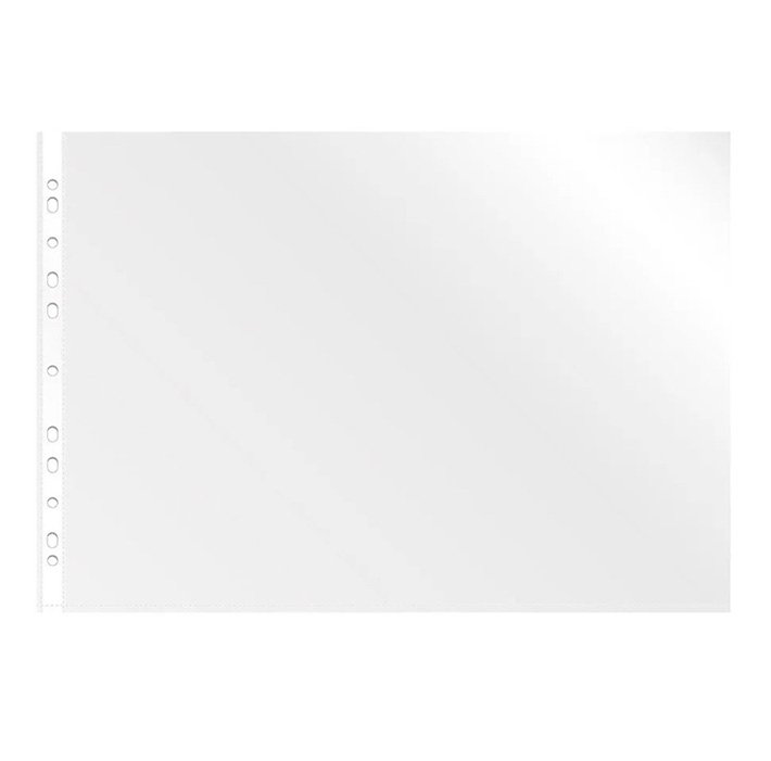 Файл-вкладыш Бюрократ формата А3 предназначен для хранения и защиты бумаг, документов. Ориентирован горизонтально. Изготовлен из полипропиленовой пленки (толщина 30 мкм). Поверхность глянцевая, прозрачная. Боковая универсальная перфорация подходит для разных типов скоросшивателей.