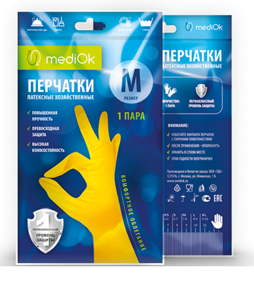 Перчатки латексные хозяйственные, M, желтые, mediOK, 1пара