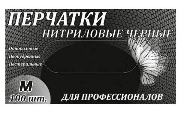 Перчатки нитриловые неопудренные, черные, размер M, 100 шт./уп.
