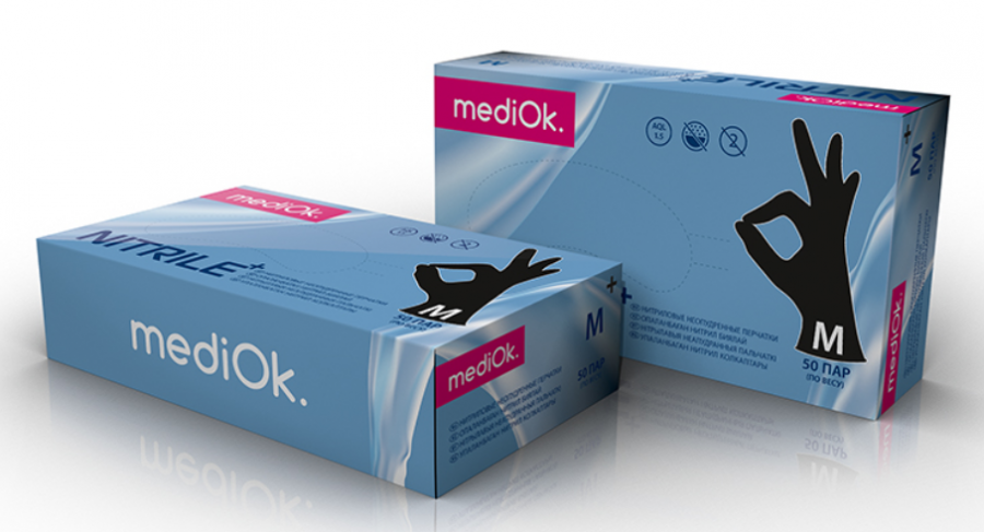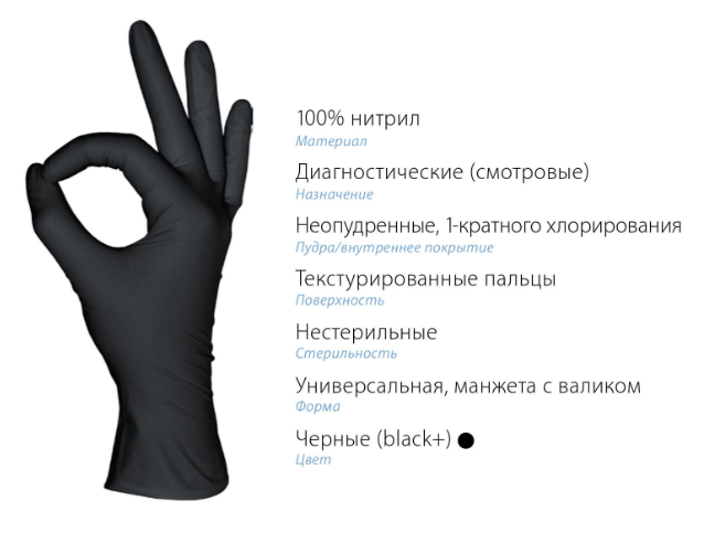Перчатки нитриловые неопудренные, L, черные, Black+, mediOK, 50 пар