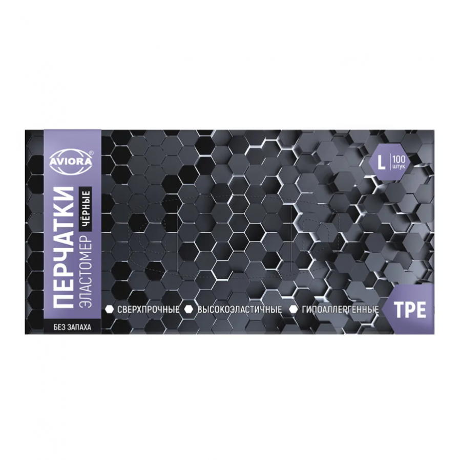 Перчатки из эластомера, черные, L, 100 шт./уп