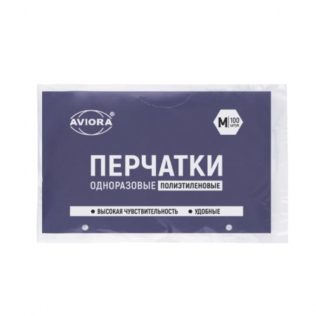 Перчатки полиэтиленовые, прозрачные, M, 100 шт./уп
